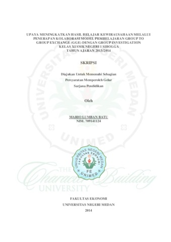 Lumban Batu, Mario (2014) UPAYA MENINGKATKAN HASIL BELAJAR KEWIRAUSAHAAN MELALUI PENERAPAN KOLABORASI MODEL PEMBELAJARAN GROUP TO GROUP EXCHANGE (GGE) DENGAN GROUP INVESTIGATION KELAS XI SMK NEGERI 1 SIBOLGA TAHUN AJARAN 2013/2014. Undergraduate thesis, UNIMED.