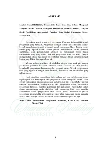 Isnaini (2016) ETNOMEDISIN KARO DAN CINA DALAM MENGOBATI PENYAKIT STROKE DI DESA JARANGUDA KECAMATAN MERDEKA. Undergraduate thesis, UNIMED.