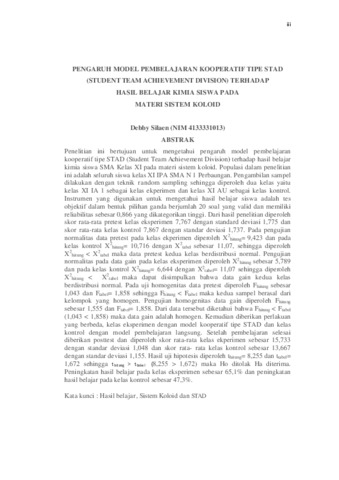 Penelitian ini bertujuan untuk mengetahui pengaruh model pembelajaran kooperatif tipe STAD (Student Team Achievement Division) terhadap hasil belajar kimia siswa SMA Kelas XI pada materi sistem koloid. Populasi dalam penelitian ini adalah seluruh siswa kelas XI IPA SMA N 1 Perbaungan. Pengambilan sampel dilakukan dengan teknik random sampling sehingga diperoleh dua kelas yaitu kelas XI IA 1 sebagai kelas ekperimen dan kelas XI AU sebagai kelas kontrol. Instrumen yang digunakan untuk mengetahui hasil belajar siswa adalah tes objektif dalam bentuk pilihan ganda berjumlah 20 soal yang valid dan memiliki reliabilitas sebesar 0,866 yang dikategorikan tinggi. Dari hasil penelitian diperoleh skor rata-rata pretest kelas eksperimen 7,767 dengan standard deviasi 1,775 dan skor rata-rata kelas kontrol 7,867 dengan standar deviasi 1,737. Pada pengujian normalitas data pretest pada kelas ekperimen diperoleh X2hitung= 9,423 dan pada kelas kontrol X2hitung= 10,716 dengan X2tabel sebesar 11,07, sehingga diperoleh X2hitung < X2tabel maka data pretest kedua kelas berdistribusi normal. Pengujian normalitas pada data gain pada kelas eksperimen diperoleh X2hitung sebesar 5,789 dan pada kelas kontrol X2hitung= 6,644 dengan X2tabel= 11,07 sehingga diperoleh X2hitung < X2tabel maka dapat disimpulkan bahwa data gain kedua kelas berdistribusi normal. Pada uji homogenitas data pretest diperoleh Fhitung sebesar 1,043 dan Ftabel= 1,858 sehingga Fhitung < Ftabel maka kedua sampel berasal dari kelompok yang homogen. Pengujian homogenitas data gain diperoleh Fhitung sebesar 1,555 dan Ftabel= 1,858. Dari data tersebut diketahui bahwa Fhitung < Ftabel (1,043 < 1,858) maka data gain adalah homogen. Kemudian diberikan perlakuan yang berbeda, kelas eksperimen dengan model kooperatif tipe STAD dan kelas kontrol dengan model pembelajaran langsung. Setelah pembelajaran selesai diberikan posttest dan diperoleh skor rata-rata kelas ekperimen sebesar 15,733 dengan standar deviasi 1,048 dan skor rata- rata kelas kontrol sebesar 13,667 dengan standar deviasi 1,155. Hasil uji hipotesis diperoleh thitung= 8,255 dan ttabel= 1,672 sehingga thitung > ttabel (8,255 > 1,672) maka Ho ditolak Ha diterima. Peningkatan hasil belajar pada kelas eksperimen sebesar 65,1% dan peningkatan hasil belajar pada kelas kontrol sebesar 47,3%.