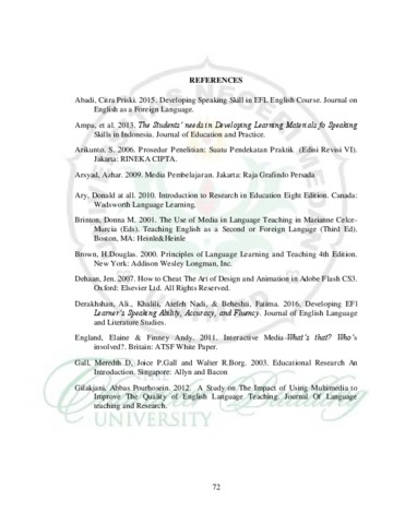 Situmorang, Zenfitri R. (2018) DESIGNING INTERACTIVE LEARNING MEDIA BY USING ADOBE FLASH CS3 FOR TEACHING SPEAKING SKILL AT COMPUTER AND NETWORK ENGINEERING OF SMKN1 BERINGIN. Undergraduate thesis, UNIMED.