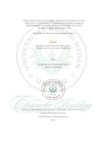 PADLI, MUHAMMAD IRHAM (2019) PERLINDUNGAN KONSUMEN TERHADAP MAKANAN DAN MINUMAN YANG BELUM TERDAFTAR BERDASARKAN PERMENKES NO.382/MENKES/PER/VI/1989 TENTANG PENDAFTARAN MAKANAN (STUDI KASUS DINAS KESEHATAN KOTA MEDAN). Undergraduate thesis, UNIMED.
