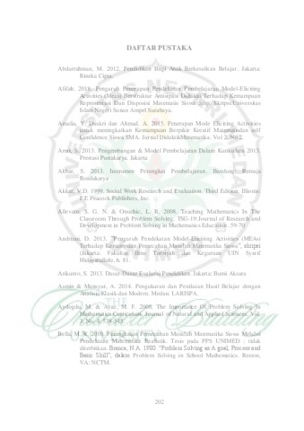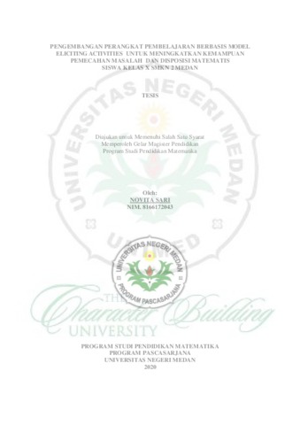 Sari, Novita (2020) Pengembangan Perangkat Pembelajaran Berbasis Model Eliciting Activities untuk Meningkatkan Kemampuan Pemecahan Masalah dan Disposisi Matematis Siswa SMK Negeri 2 Medan. Masters thesis, UNIMED.