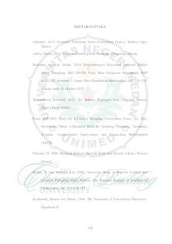Sianturi, Lentare Pinta (2020) Pengembangan Instrumen Penilaian Teks Deskripsi Berbasis Higher Order Thinking Skills (HOTS) Siswa Kelas VII SMP Swasta Methodist Charles Wesley Medan. Masters thesis, UNIMED.