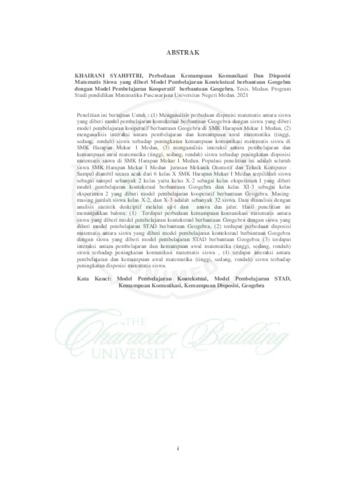 Nasution, Khairani Syahfitri (2021) Perbedaan Kemampuan Komunikasi Dan Disposisi Matematis Siswa yang diberi Model Pembelajaran Kontekstual berbantuan Geogebra dengan Model Pembelajaran Kooperatif berbantuan Geogebra. Masters thesis, UNIMED.
