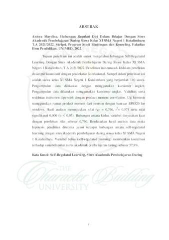 Maydina, Anisya (2022) Hubungan Regulasi Diri Dalam Belajar Dengan Stres Akademik Pembelajaran Daring Siswa Kelas XI SMA Negeri 1 Kutalimbaru T.A 2021/2022. Undergraduate thesis, UNIMED.
